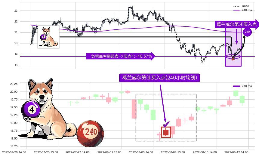 ⚀ 2022-08-04 14:00:00-小时显现 葛兰威尔均线 240小时均线 第④买入点 下降趋势均值回复的短线反弹信号,后市看涨,买进信号