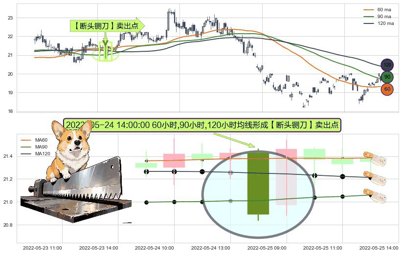 ⚀ 2022-05-24 14:00:00小时显现 60小时-90小时-120小时均线 【断头铡刀】卖出点 看空信号,后市看跌,卖出