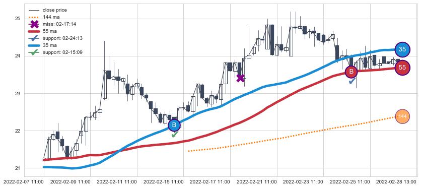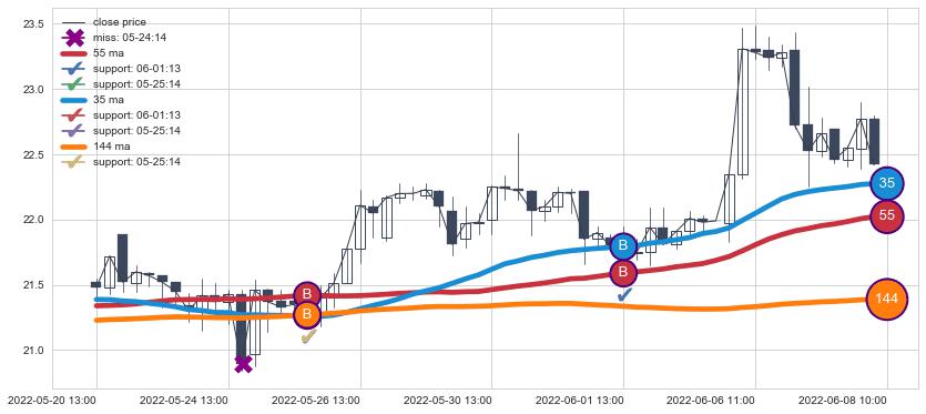 ⚀ 2022-06-13 14:00:00小时-2022-07-19 14:00:00小时显现 30小时-60小时-90小时均线 【高山滑雪】买入点 看多信号,后市看涨,买入