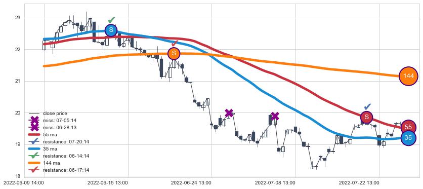 ⚂ 2022-08-12 13:00:00-小时均线向上突破,2022-08-12 14:00:00-小时重新下穿均线破位,均线阻力再次生效