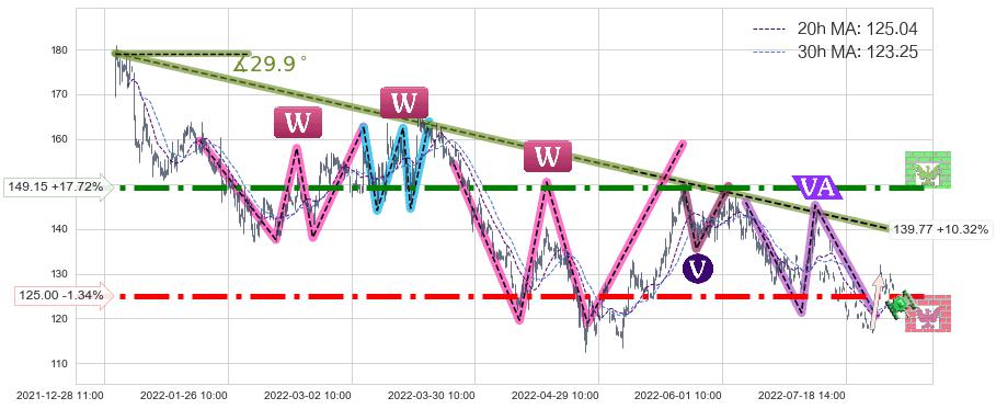 ♘ 支撑价格位125.00,可信任强度92.35%,距离最后交易2022-08-12 14:00形成的收盘价格126.70相差 -1.34%