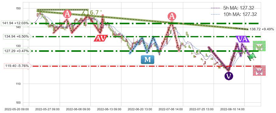 ♘ 阻力价格位134.94,可信任强度75.59%,距离最后交易2022-08-12 14:00形成的收盘价格126.70相差 +6.50%
