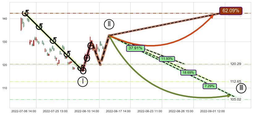 ➣ 大数据预测:大级别c浪位置(08-15:11, 132.64)
