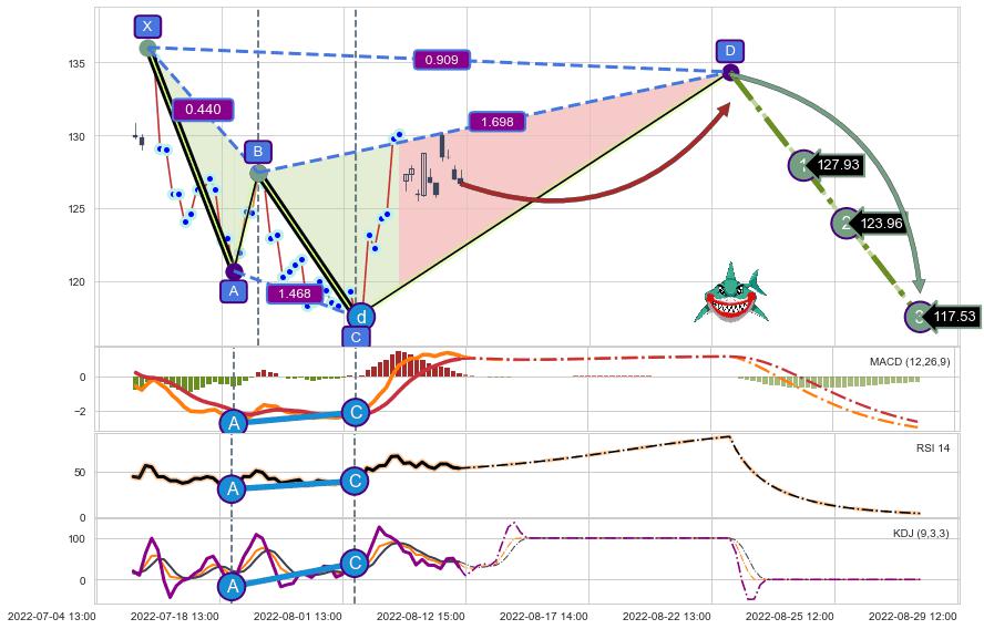 ➣ D点拟合预测价格134.35,距离最后交易收盘价格126.70相差 +6.04%