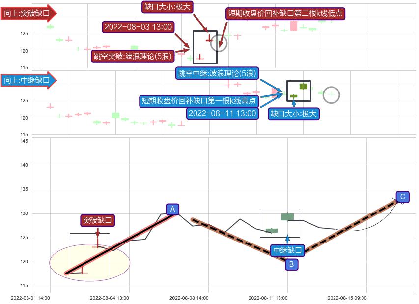 ➢ 2022-08-11 13:00形成:向上跳空【中继】缺口