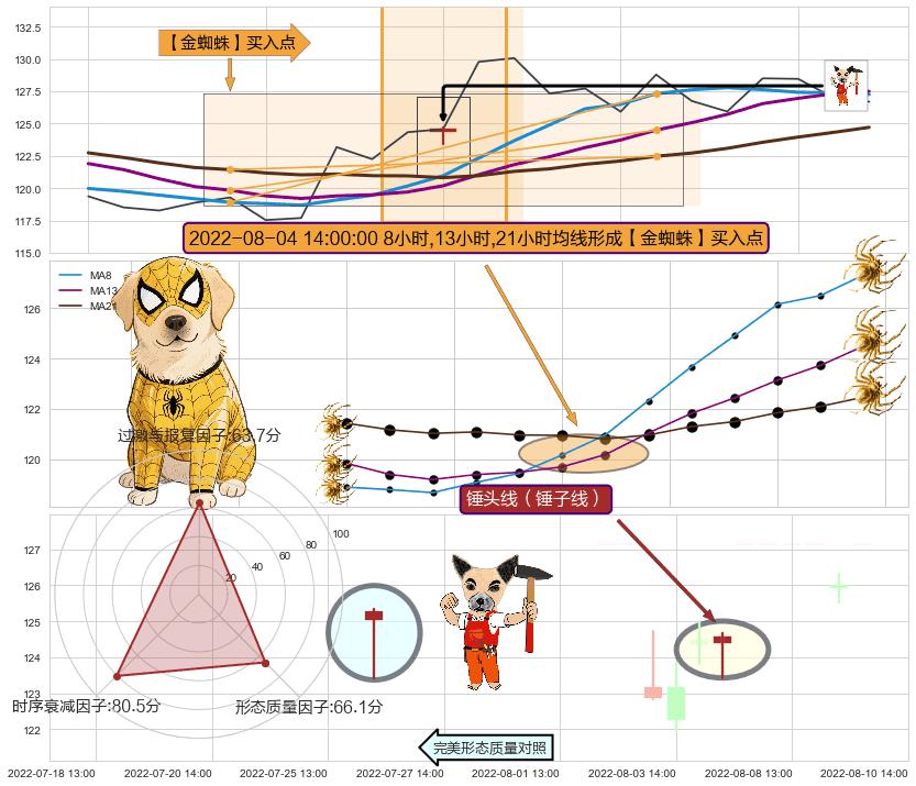 ➢ 收盘价(08-03:13: 123.18 )→再次回踩→第一根k线低点(07-28:14: 119.22 )