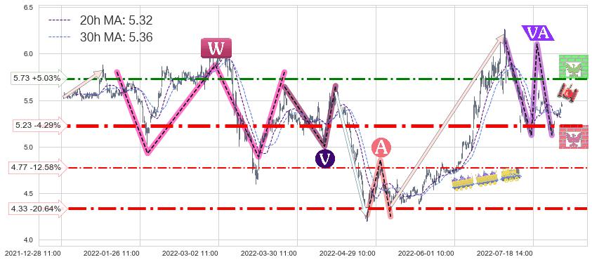♞ 20小时均线:5.32,30小时均线:5.36→ 快线<慢线