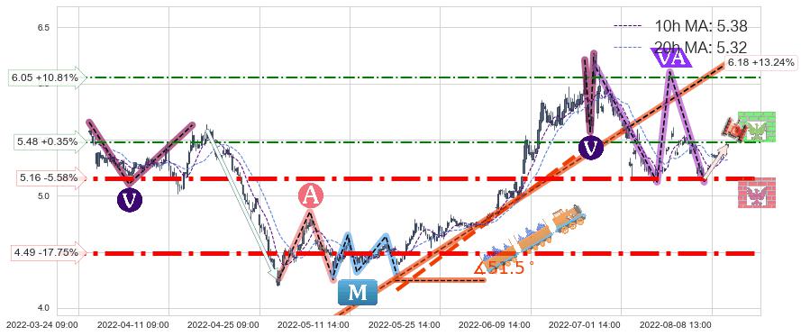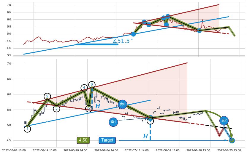 ➣ 【仅预测突破】最后价格:5.46与预测突破价格:5.23→【空间临近】后续最小【反转】第一目标价格→(08-25:13: 4.50 )