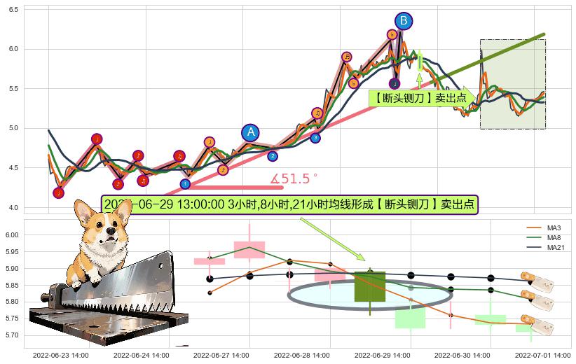 ✂️ 2022-04-27 09:00-2022-07-04 13:00上升趋势存在反转[风险],其原上升趋势的支撑位(6.18)已破位[强阻力信号],原上升趋势角度: 51.5˚