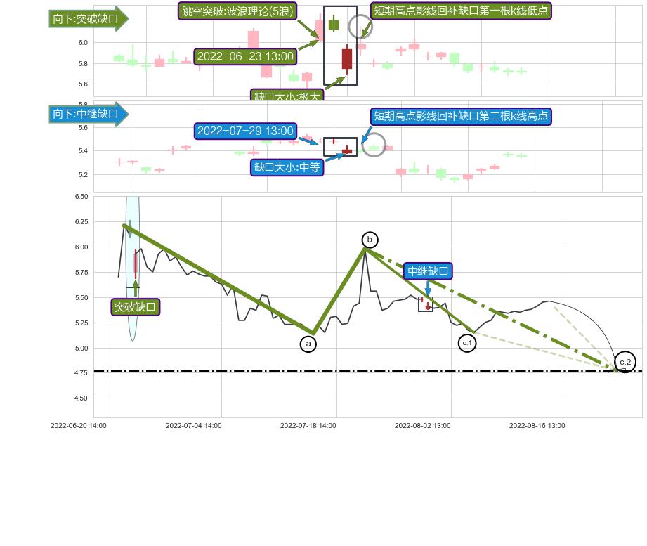 ➣ 中继缺口刚刚形成,后续k还不足3根,关键走势缺口完全没有出现回补迹象