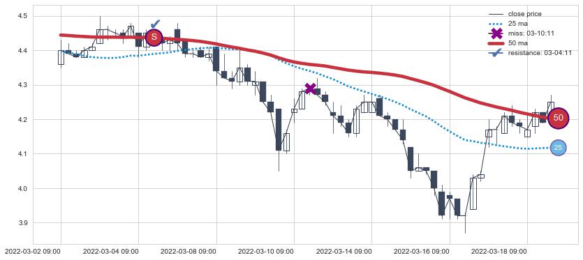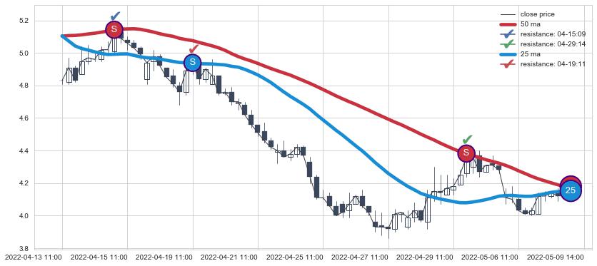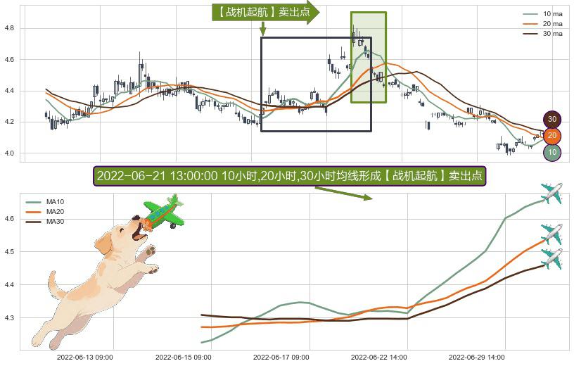 ⚀ 2022-06-14 14:00:00小时-2022-07-01 14:00:00小时显现 10小时-20小时-30小时均线 【战机起航】卖出点 看空信号,后市看跌,卖出