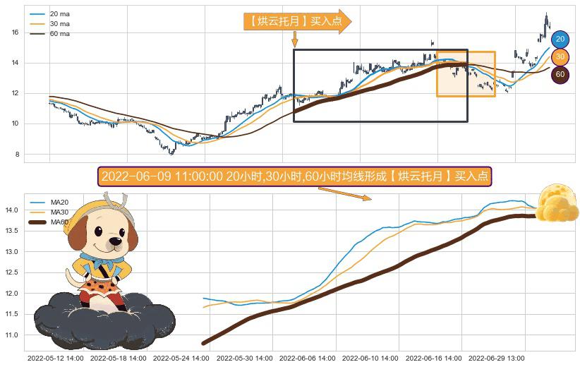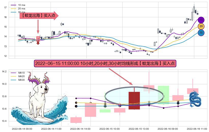 ⚀ 2022-06-15 11:00:00小时显现 10小时-20小时-30小时均线 【蛟龙出海】买入点 看多信号,后市看涨,买入