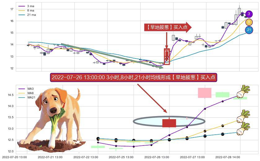 ⚀ 2022-07-26 13:00:00小时显现 3小时-8小时-21小时均线 【旱地拔葱】买入点 看多信号,后市看涨,买入