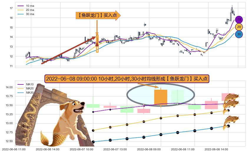 ⚀ 2022-06-08 09:00:00小时显现 10小时-20小时-30小时均线 【鱼跃龙门】买入点 看多信号,后市看涨,买入