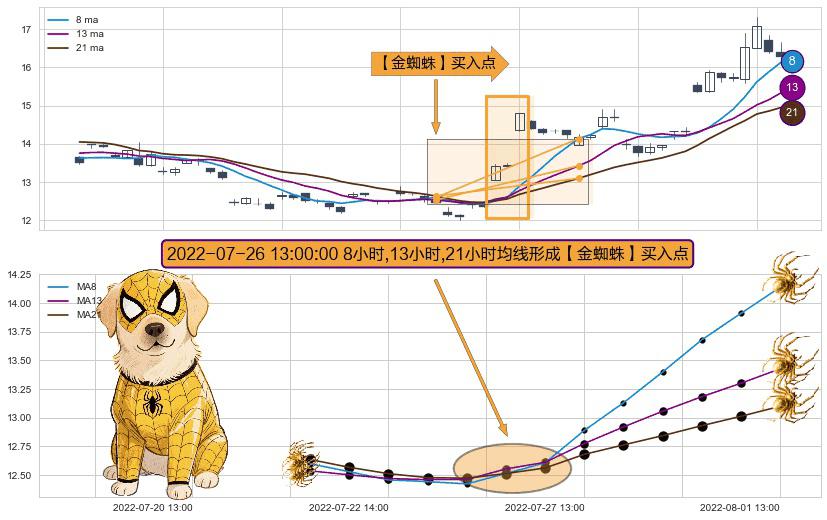 ⚀ 2022-07-26 13:00:00小时显现 8小时-13小时-21小时均线 【金蜘蛛】买入点 看多信号,后市看涨,买入