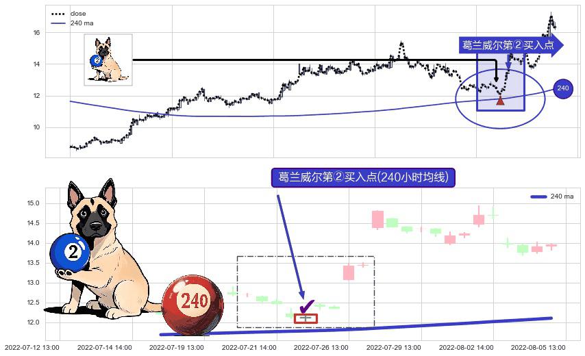 ⚀ 2022-07-22 14:00:00-小时显现 葛兰威尔均线 240小时均线 第②买入点 上升趋势的中继信号,后市看涨,买进信号