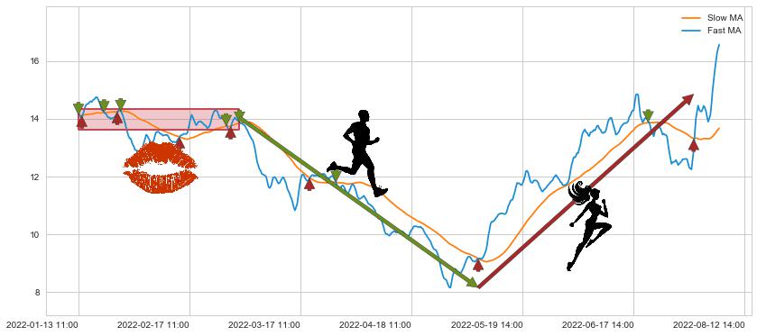 03-02 11:00至05-09 11:00 慢线与快线呈空头排列, 慢线与快线接触少,无缠绕