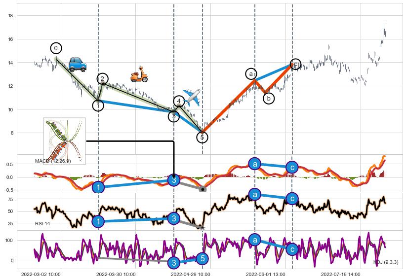 ➣ a,c调整浪MACD, RSI, KDJ走势都出现【常规背离】abc结束及延续原5浪走势概率增强