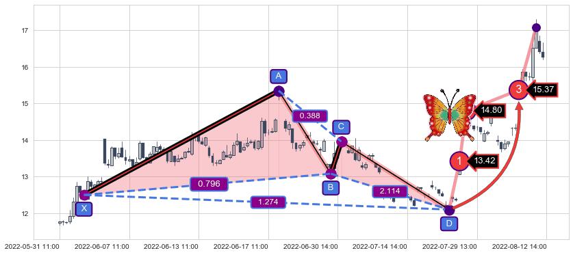 ➣ 已完成【蝴蝶】形态起点X: 06-01:14, 终点D: 07-22:14, 共106交易小时