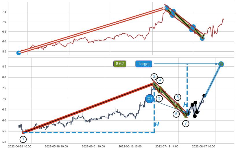 ➣ 最小中继整理涨幅→𝐇: 2.280 (𝐇旗杆的长度:旗杆起点→顶点)