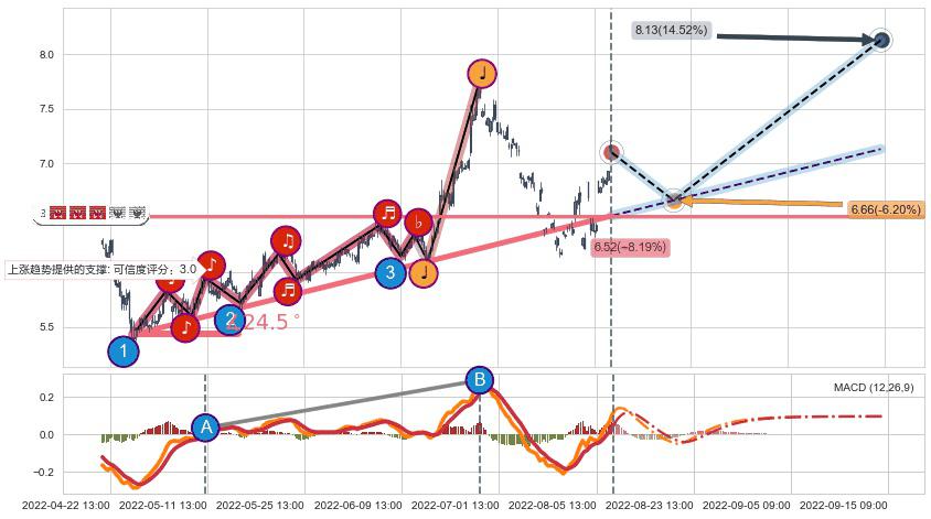 ➣ 预测:2022-09-15 09:00,【继续上扬】稳定目前上涨趋势的前提下,预测价格:8.13