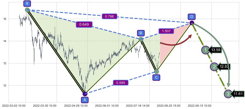 ➣ D点拟合预测价格14.81,距离最后交易收盘价格13.91相差 +6.43%