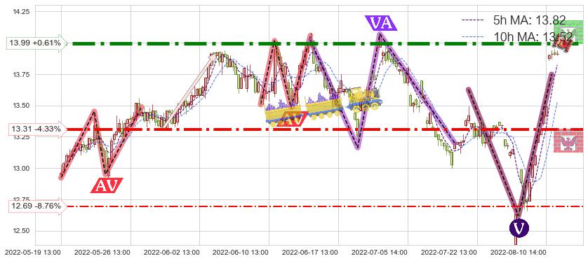 ♘ 阻力价格位13.99,可信任强度95.47%,距离最后交易2022-08-12 14:00形成的收盘价格13.91相差 +0.61%