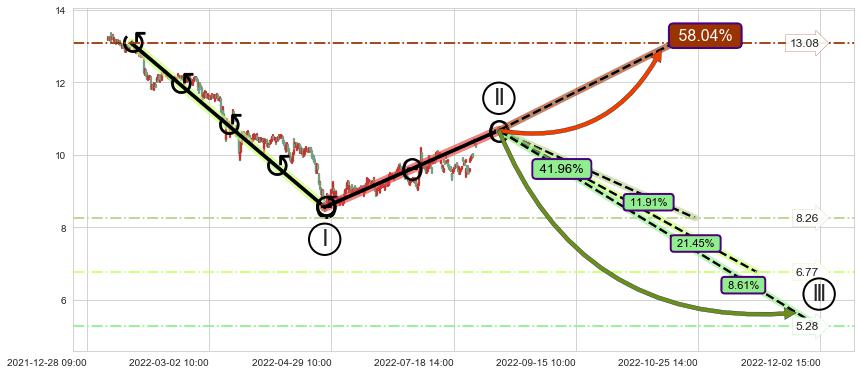 ♘ 支撑价格位9.16,可信任强度92.59%,距离最后交易2022-08-12 14:00形成的收盘价格10.23相差 -10.45%