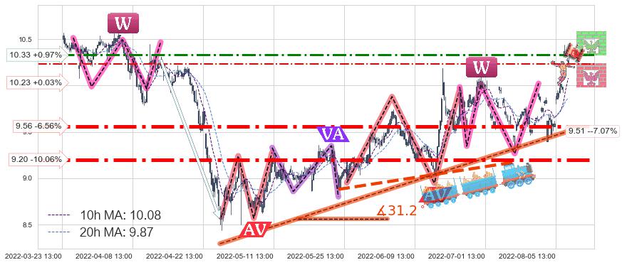 ♞ 10小时均线:10.08,20小时均线:9.87→ 快线>慢线
