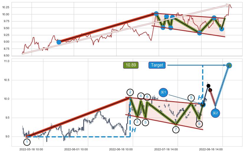 ➢ 【买1】: 激进型 买点 →(08-05:14: 9.85 )形成突破降⚑旗形【整理】形态