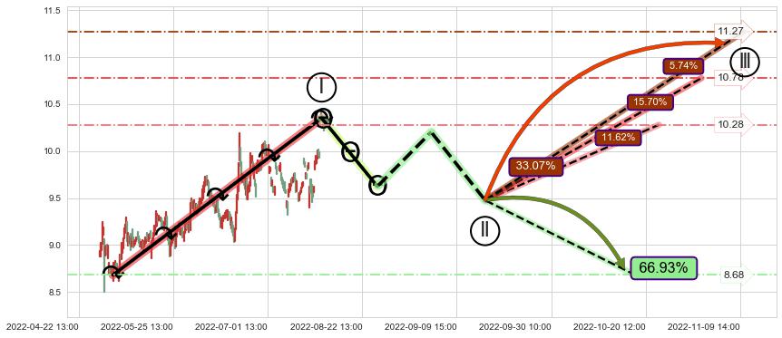 ♘ 支撑价格位9.56,可信任强度90.74%,距离最后交易2022-08-12 14:00形成的收盘价格10.23相差 -6.56%