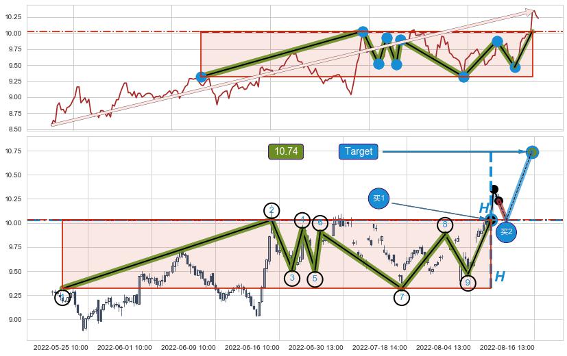 ➢ 【阻力】连续作用在→【②④⑥⑧】形成上阻力震荡平行线