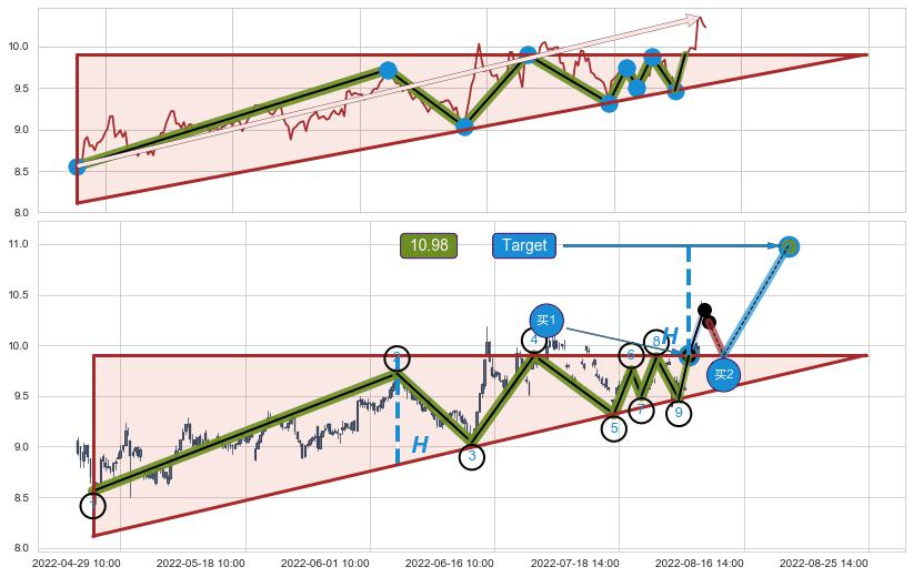 ➢ 【买1】: 激进型 买点 →(08-05:14: 9.90 )形成突破上升三角形整理【整理】形态