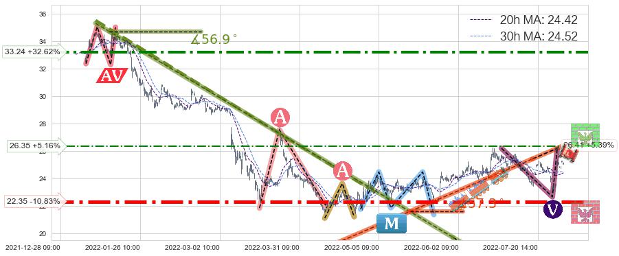 ♞ 20小时均线:24.42,30小时均线:24.52→ 快线<慢线