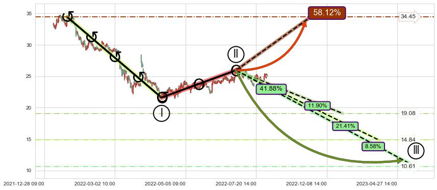 ➣ 大趋势循环浪继续向下概率41.88%