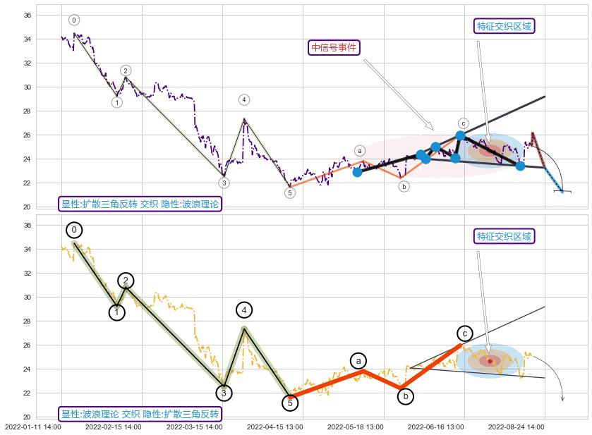 从2022-04-12 11:00至2022-04-21 14:00,共包含38个小时,阶段股价上涨0.96%,阶段股价变动位移路程比: 1 : 23