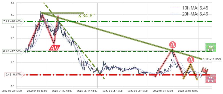 ♞ 10小时均线:5.45,20小时均线:5.46→ 快线<慢线
