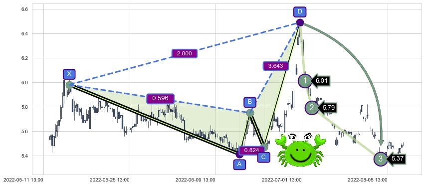 ➣ 已完成【螃蟹】形态起点X: 05-16:13, 终点D: 06-30:14, 共135交易小时