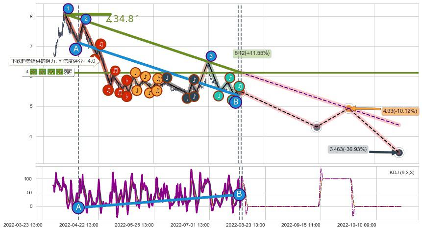 ➣ 预测:2022-09-28 11:00,【试探阻力】稳定目前下跌趋势的前提下,预测价格:4.93