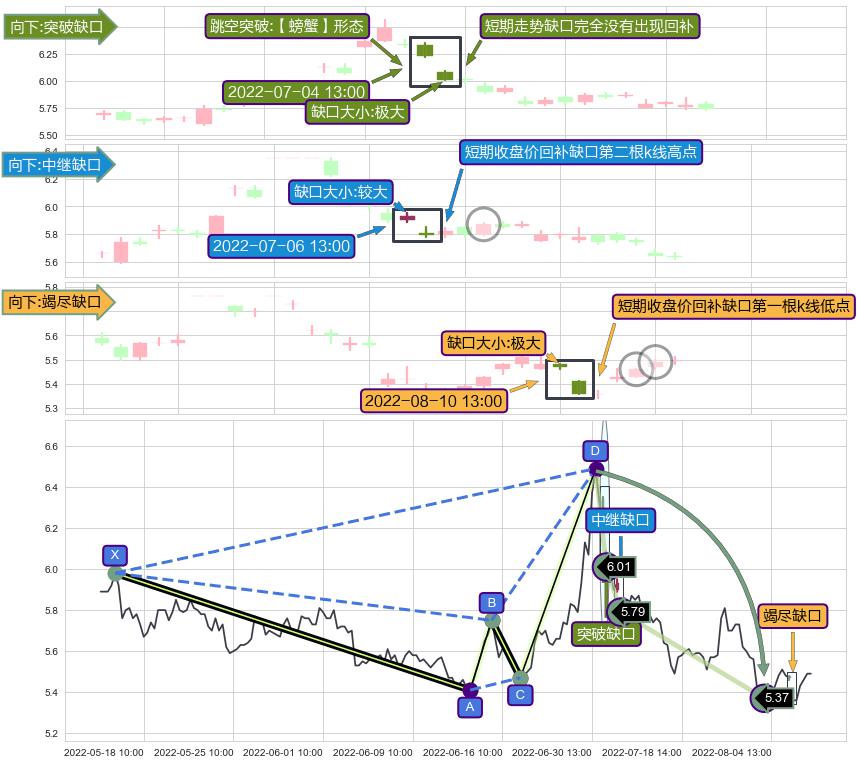 ➢ 2022-08-10 13:00形成:向下跳空【竭尽】缺口