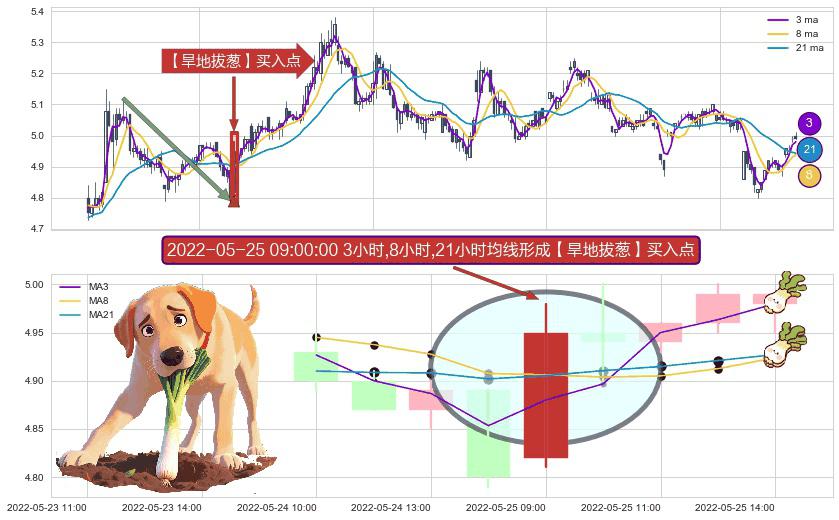 ⚀ 2022-05-25 09:00:00小时显现 3小时-8小时-21小时均线 【旱地拔葱】买入点 看多信号,后市看涨,买入