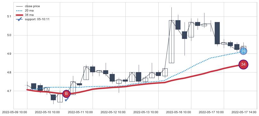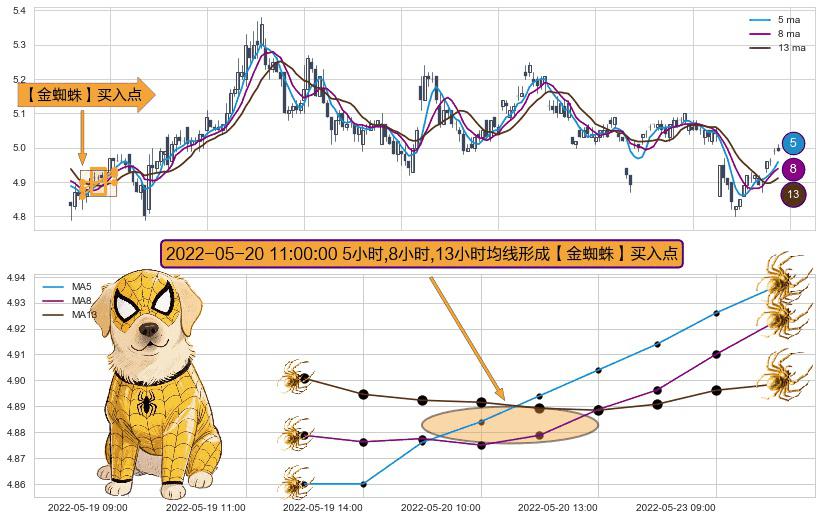 ⚀ 2022-05-20 11:00:00小时显现 5小时-8小时-13小时均线 【金蜘蛛】买入点 看多信号,后市看涨,买入