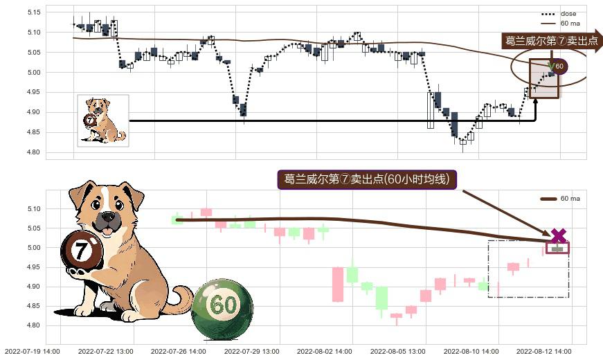 ⚀ 2022-08-12 14:00:00-小时显现 葛兰威尔均线 60小时均线 第⑦卖出点 下降趋势的中继信号,后市看跌,卖出信号