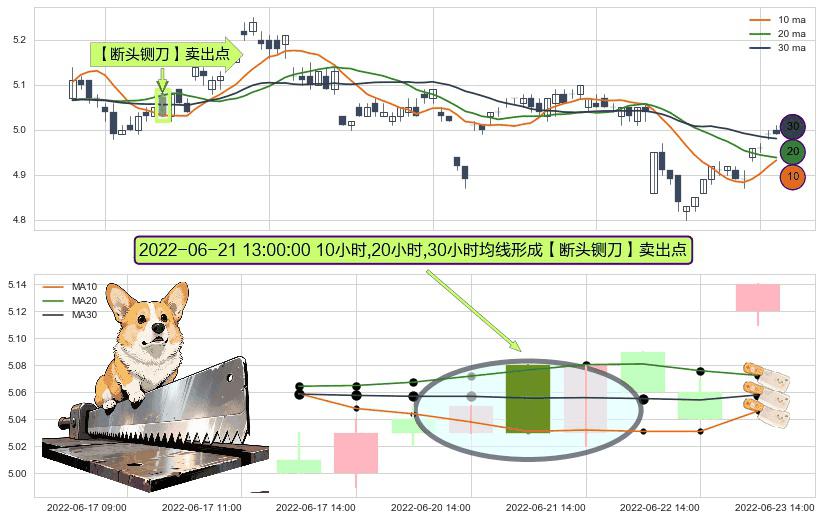 ⚀ 2022-06-21 13:00:00小时显现 10小时-20小时-30小时均线 【断头铡刀】卖出点 看空信号,后市看跌,卖出