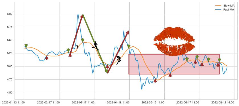 ⚄ 价格在均线遇到阻力后再次向下回落了【极短】距离, 第⑦卖出点 阻力效果【等待验证】