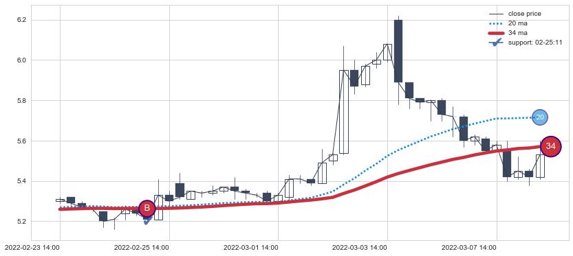 ⚂ 2022-06-21 13:00:00小时突然冒出一根大阴线,一下子下穿三条均线且收盘价收在各条均线之下