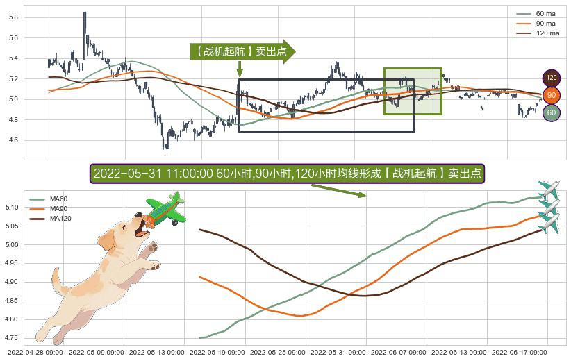 ⚀ 2022-05-16 09:00:00小时-2022-06-16 13:00:00小时显现 60小时-90小时-120小时均线 【战机起航】卖出点 看空信号,后市看跌,卖出