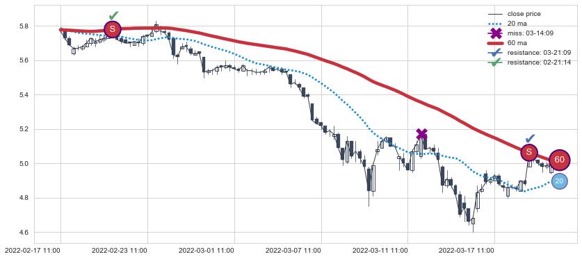 ⚁ 60小时均线 第⑧卖出点 属于 均线服从 信号,属于趋势运行的【常态】即信号期望为下降趋势的中继