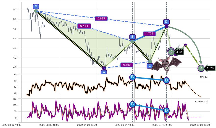 ➣ 已完成【蝙蝠】形态起点X: 03-14:09, 终点D: 07-07:13, 共347交易小时