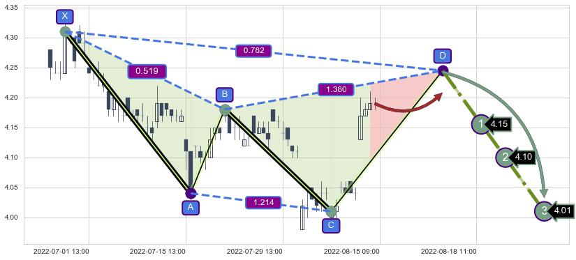 ➣ 未完成【赛福】形态起点X: 06-28:14, 已到达C点: 08-05:13, 预测最终D点: 08-17:10, 共78交易小时